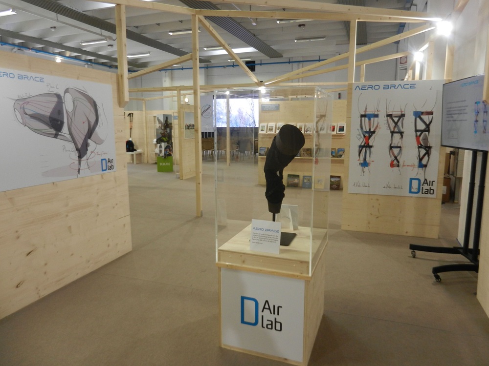I prototipi della ginocchiera Aero Brace sono esposti e visibili al pubblico sia presso l’area D-Air lab, sia presso lo stand dell’Università di Padova. In quest’ultimo spazio, il prototipo viene inserito all’interno del progetto La Sicurezza: “Dalla Testa ai Piedi”, esposto insieme ai prodotti di altri prestigiosi partner come Dainese, Head Tyrolia e FIS. Questa cooperazione e sinergia con realtà di primo piano del settore nasce con il comune obiettivo di rendere la pratica dello sci più sicura, tanto nel contesto delle competizioni agonistiche quanto nella pratica amatoriale.